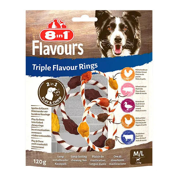 8in1 Flavours Triple Flavour Rings M/L – kramtomi skanėstai šunims.