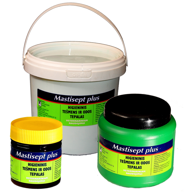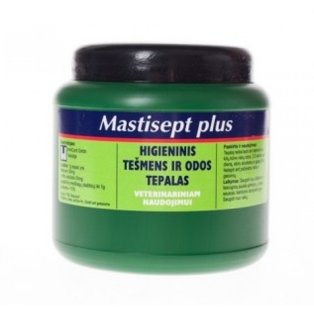 Higieninis tešmens ir odos tepalas „Mastisept Plus“ –  žalios spalvos tirštas tepalas, pagalbinė priemonė uždegimams gydyti