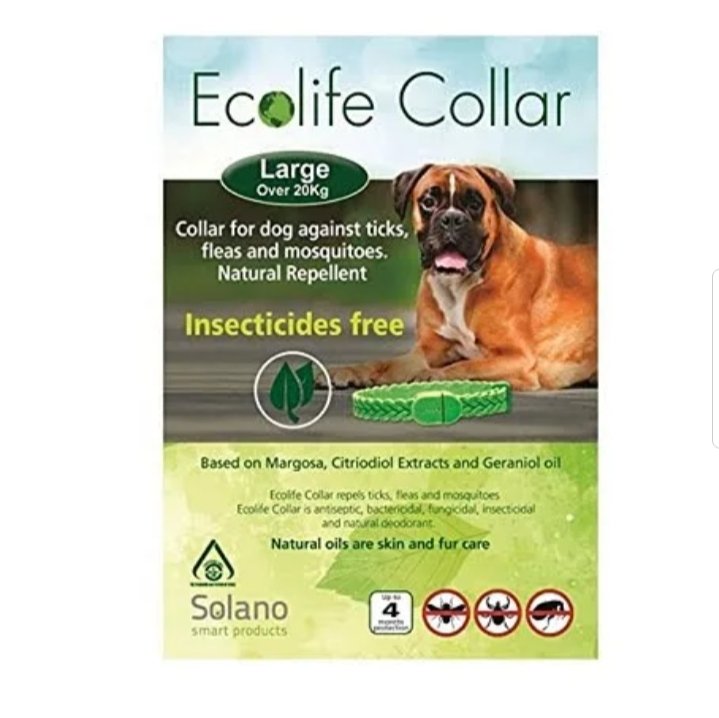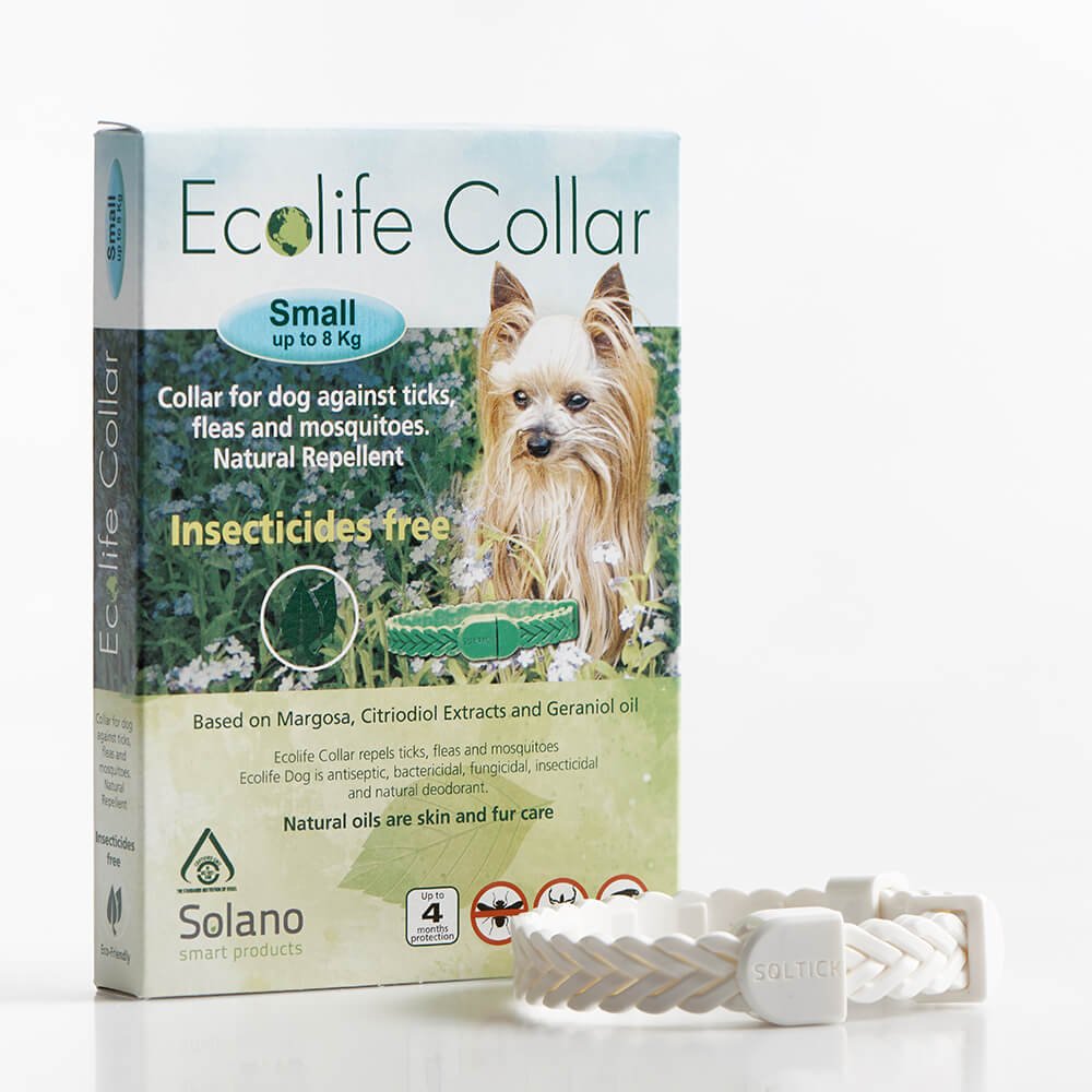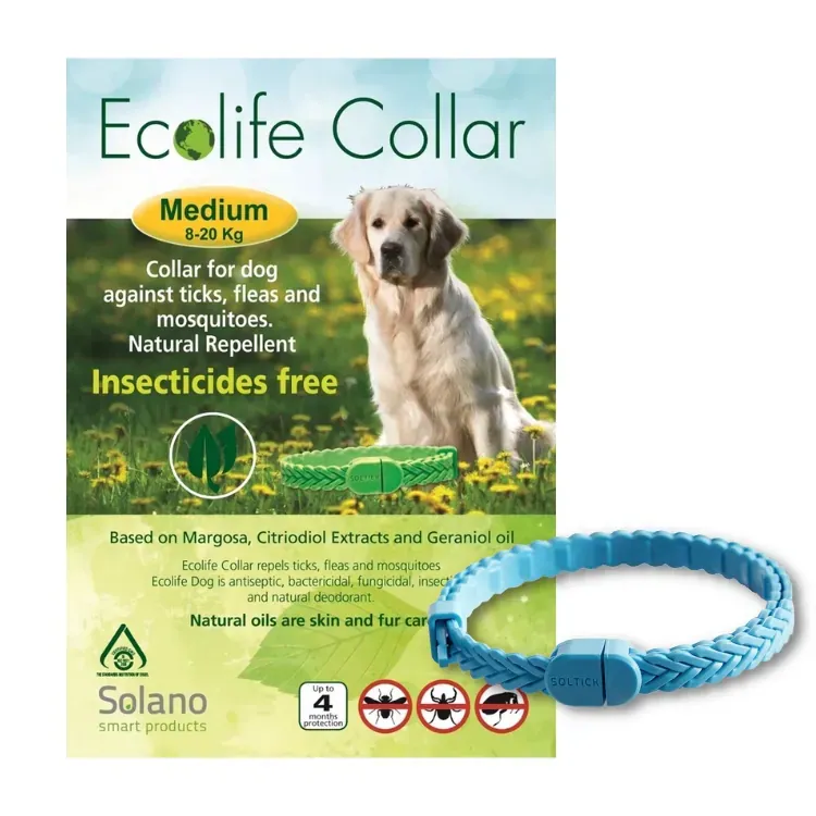 Eteriniais aliejais impregnuotas antkaklis nuo blusų, erkių, musių ir uodų. Įrodyta, kad šis unikalus derinys efektyviausiai atbaido visus vabzdžius, įskaitant erkes, blusas, uodus, skruzdėles ir muses. Ecolife unikalus natūralus aliejų derinys suteikia kailiui blizgesio ir apsaugo nuo plaukų slinkimo bei odos pažeidimų.