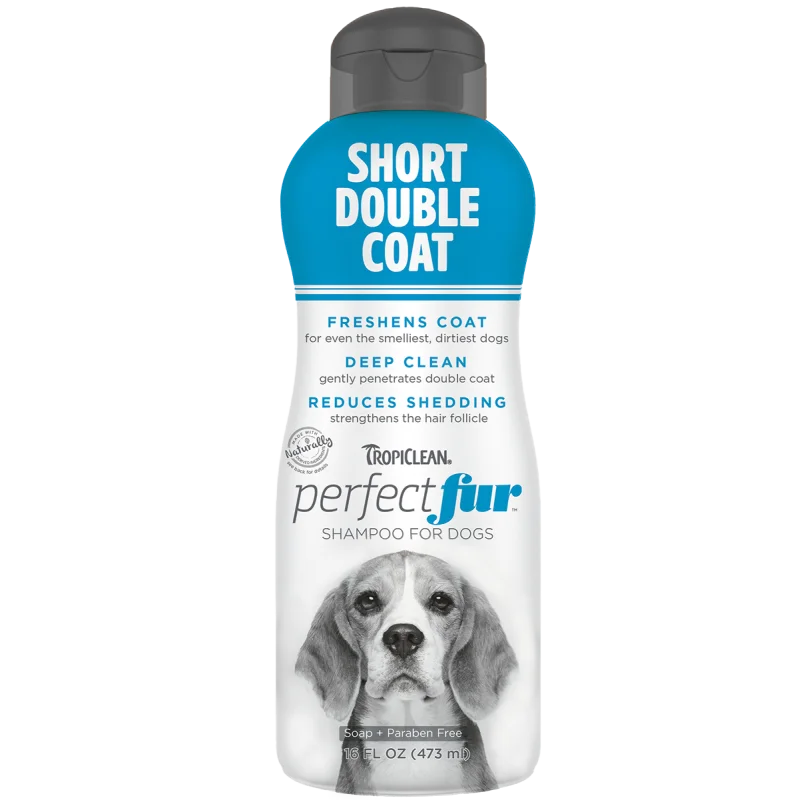 TropiClean PerfectFur™ Short Double Coat Shampoo – natūralus, švelnus šampūnas, specialiai sukurtas trumpo dvigubo kailio šunims, tokiems kaip labradorai, mopsai, bigliai, rotveileriai ir kitos panašių veislių atstovai.